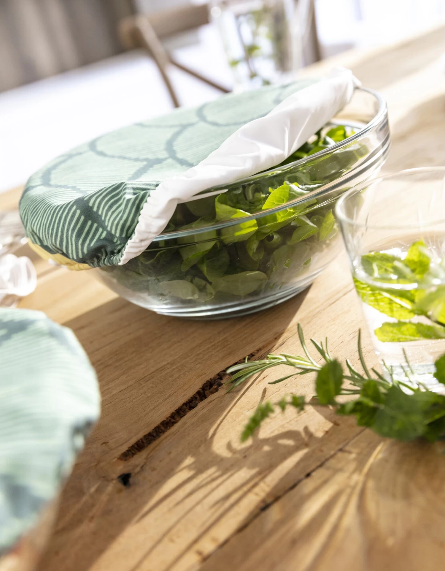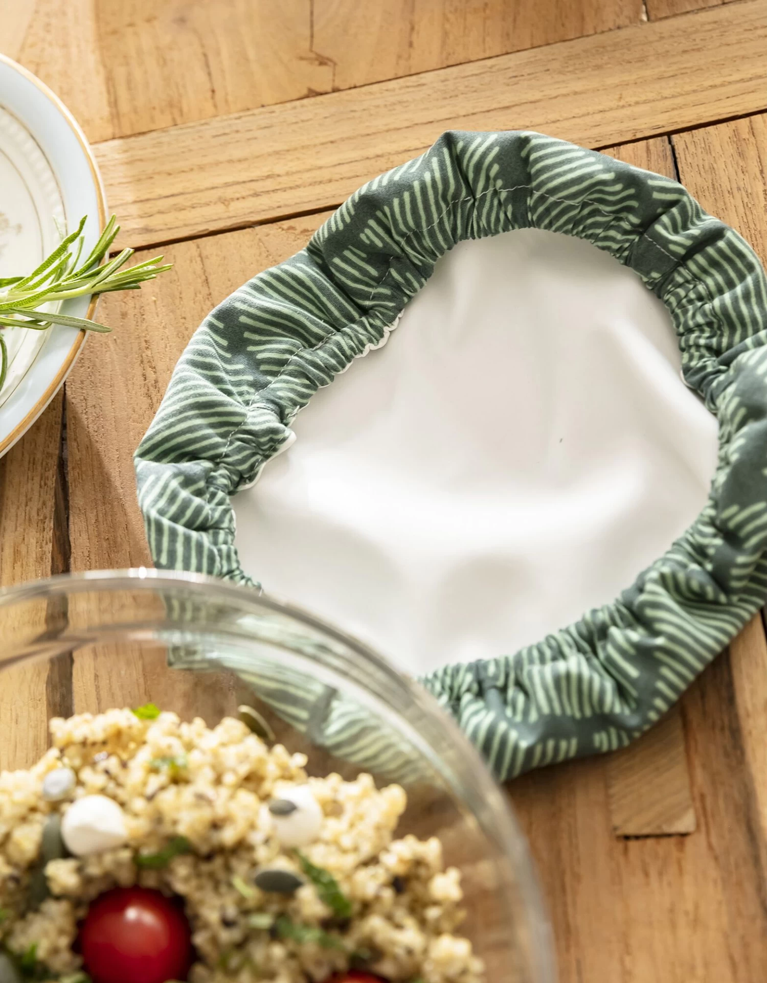 – Finition élastiquée pour s’adapter sans glisser à un grand nombre de plats ronds et saladiers