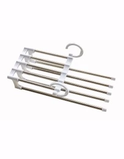 – Astucieux, il peut supporter 5 vêtements d’un coup en utilisant l’encombrement d’un seul cintre !