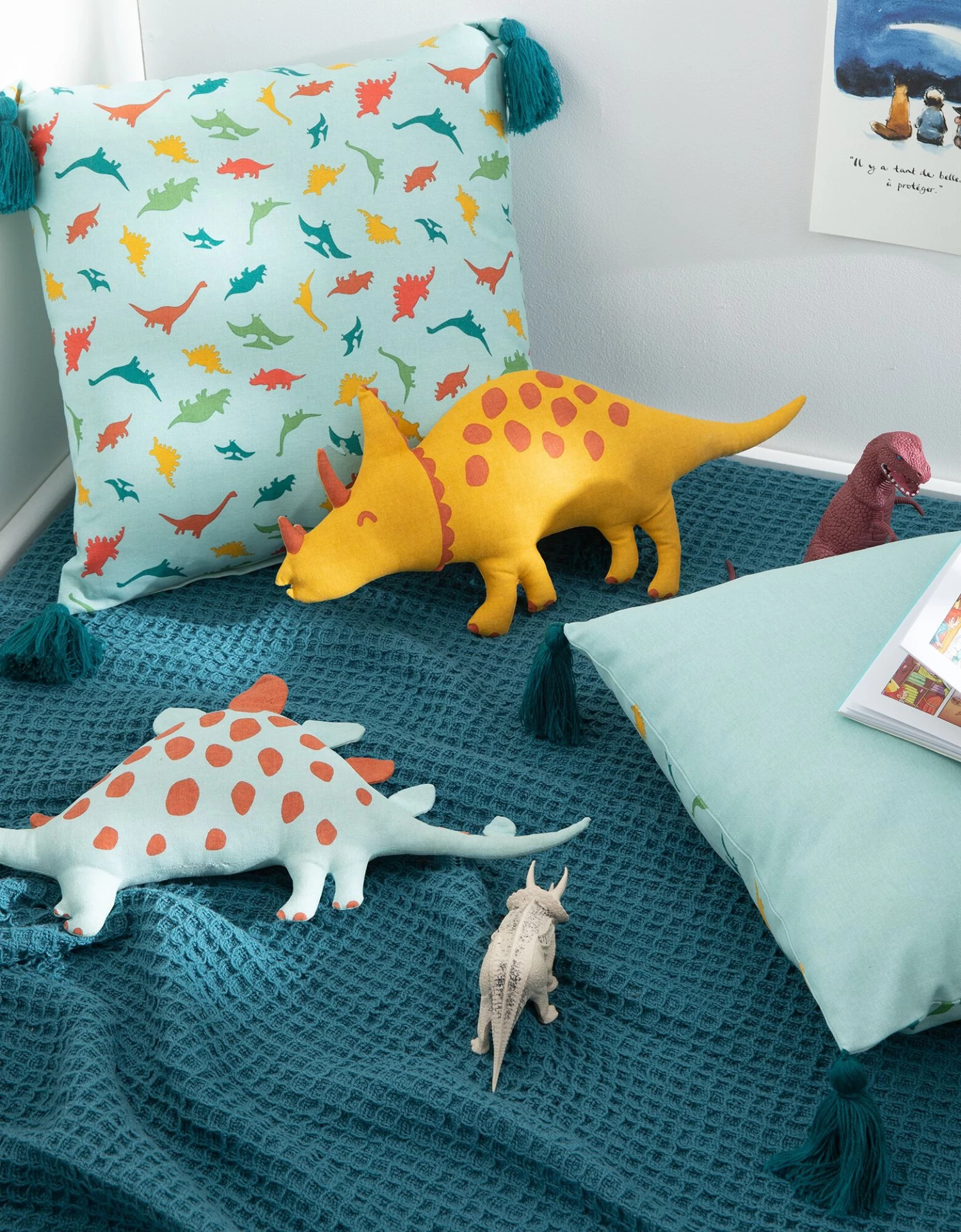 – Coussin « tricératops » coordonné vendu sur blancheporte.fr