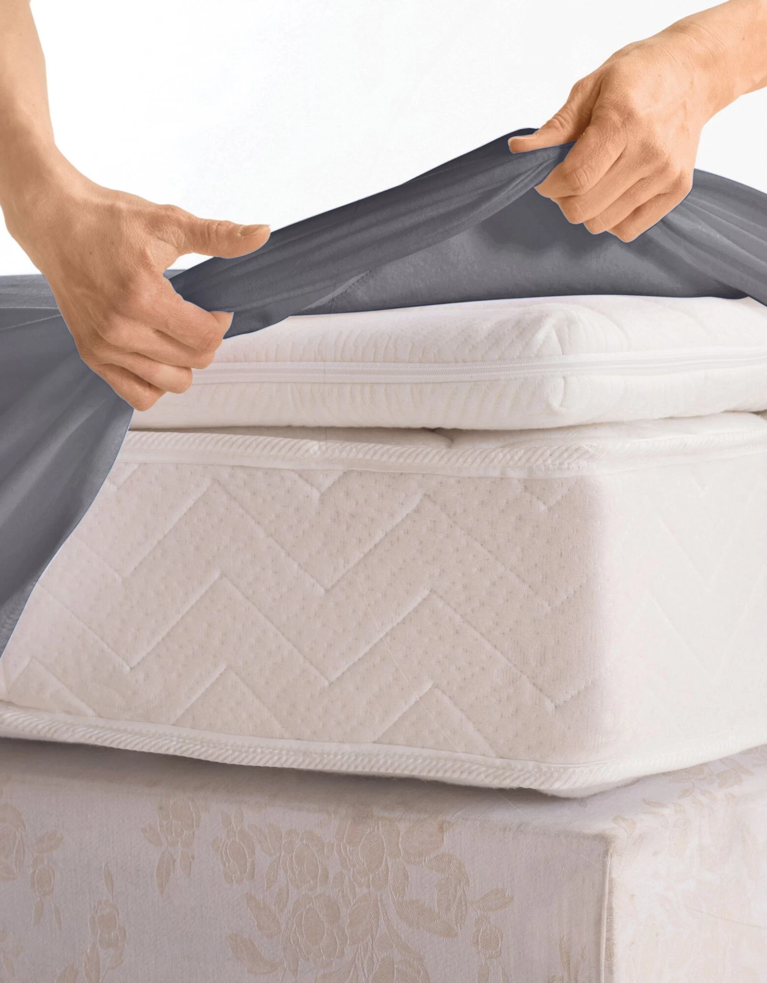 – Draps-housse à bonnets extra larges (40 cm) spécialement étudié pour les matelas très épais ou les matelas complétés d’un surmatelas