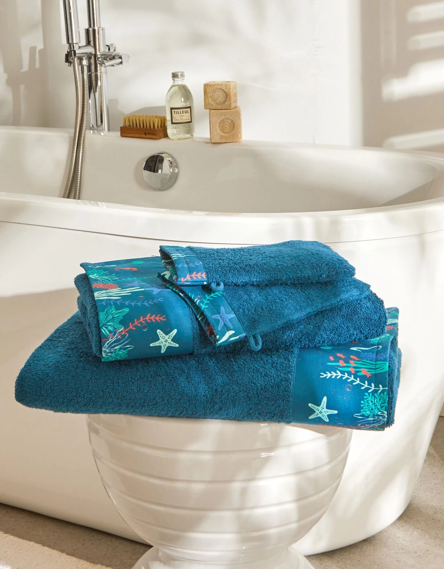 – Finition bande rapportée imprimée motifs corail