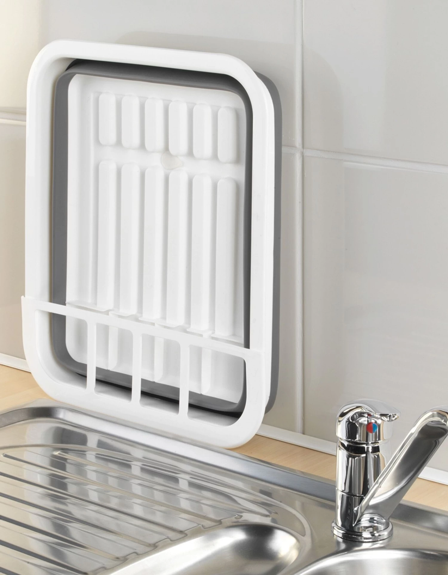 – Grâce au système d’écoulement, peut être placé sur un meuble près de l’évier en cas d’absence de plan spécial égouttoir