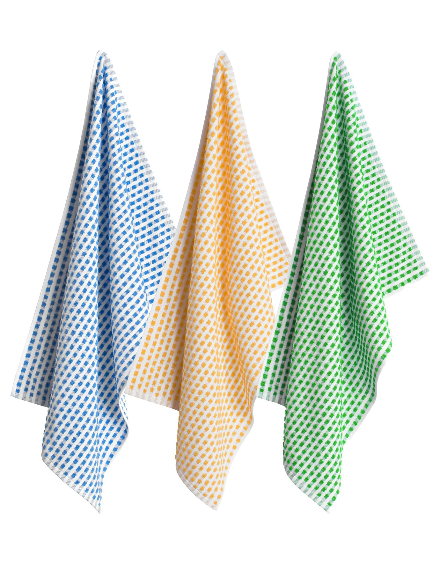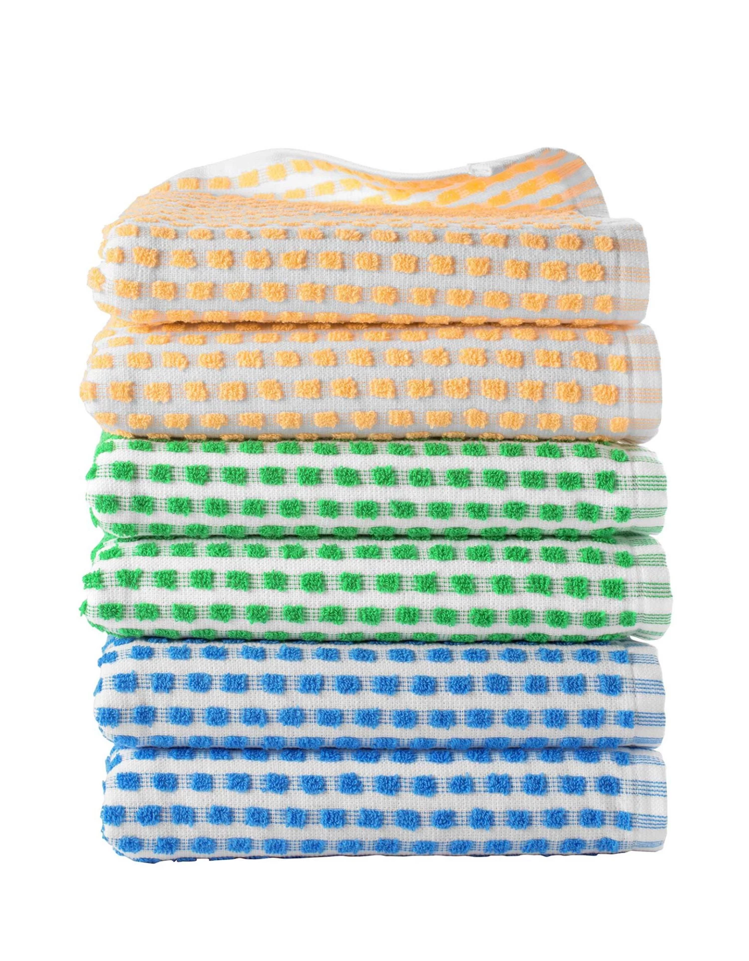 ∙ Lot de 6 ou de 12, petits damiers ciselés unicolores bleu, vert ou pêche sur fond blanc
