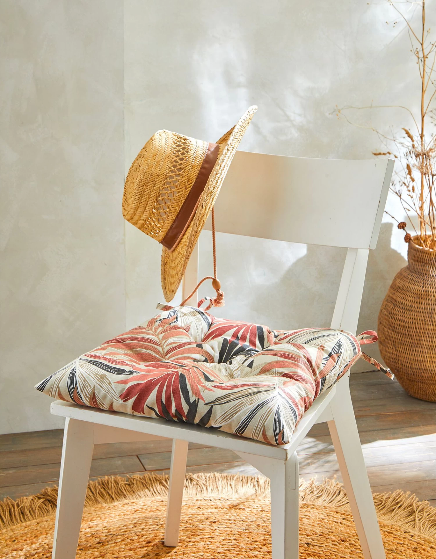 – Galette de chaise imprimée feuillage, identique sur les 2 faces