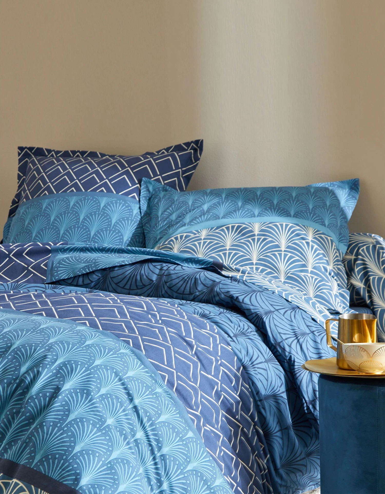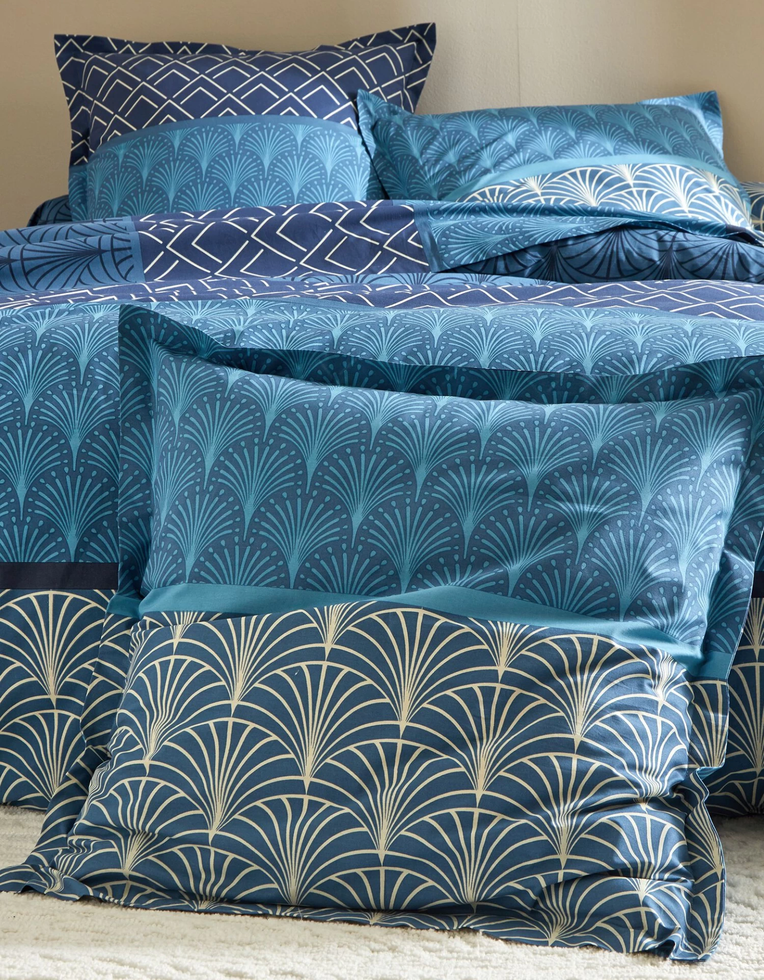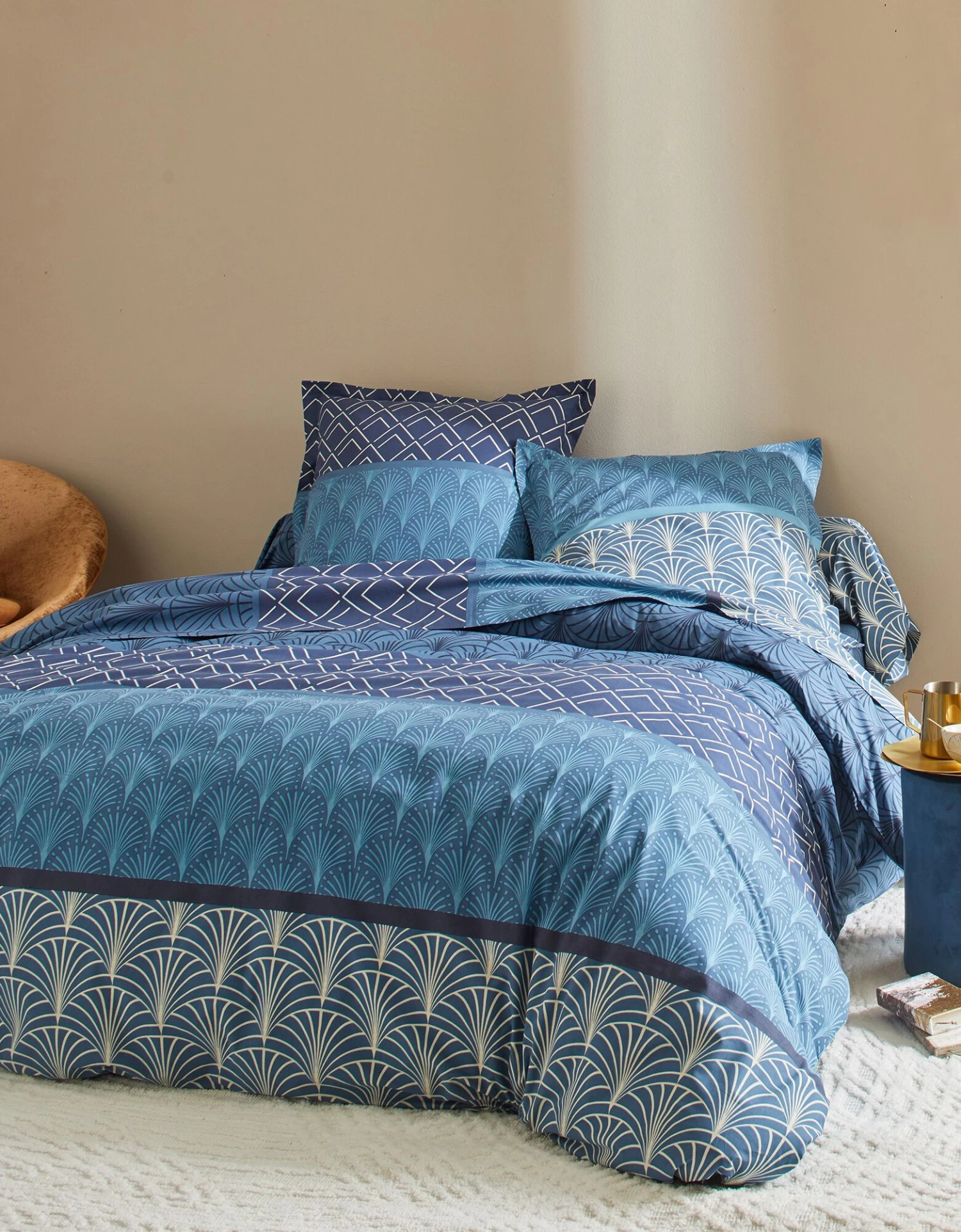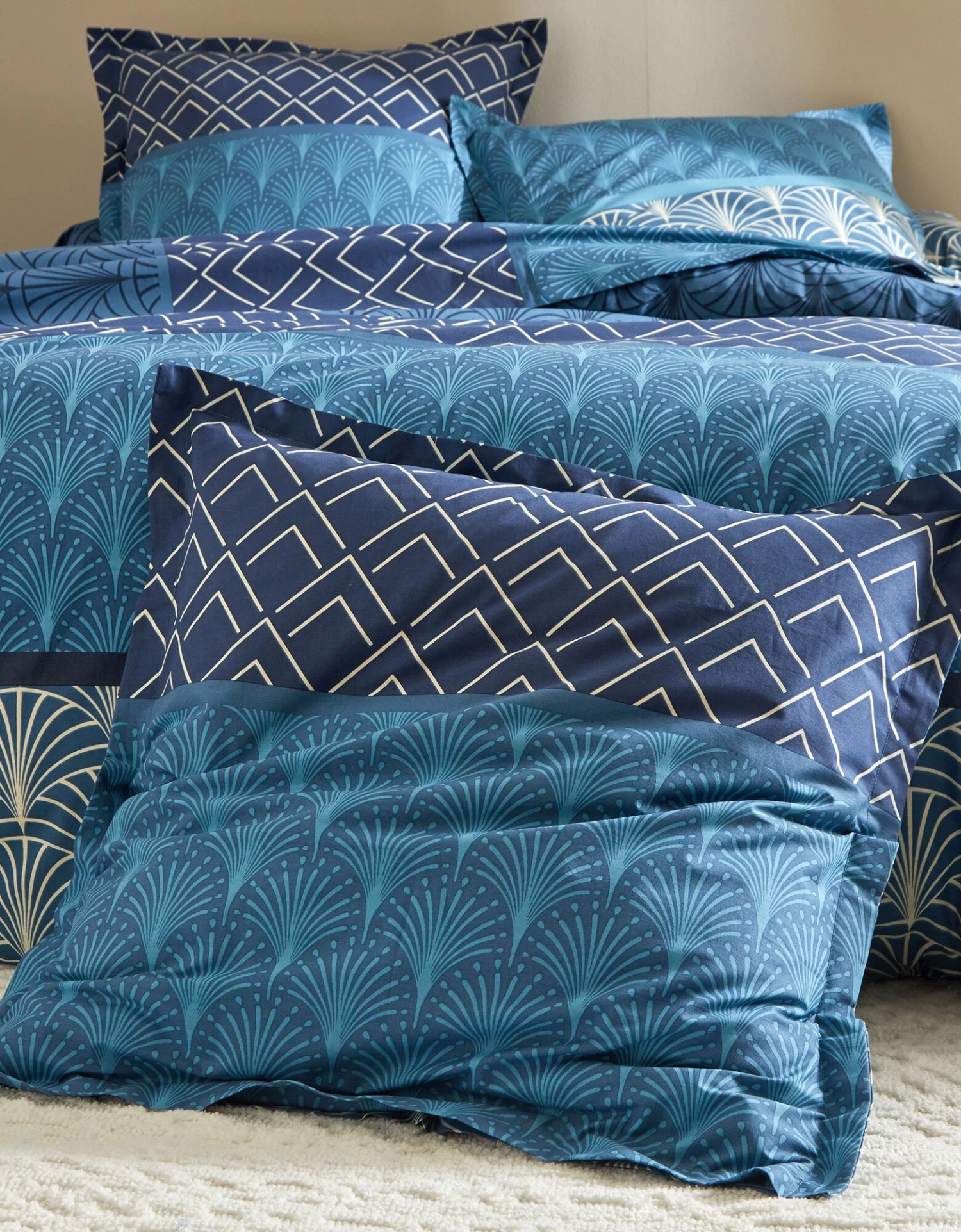 – Housse de couette, imprimé effet placé : 2 faces identiques. Forme bouteille pour bien border. Existe en grande taille (260×240 cm)
