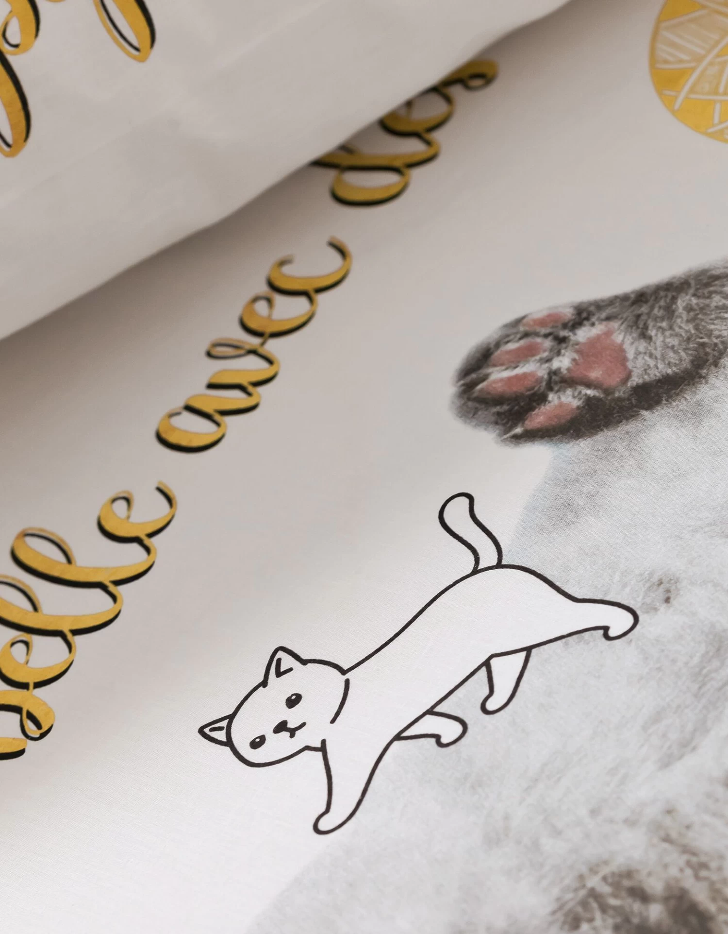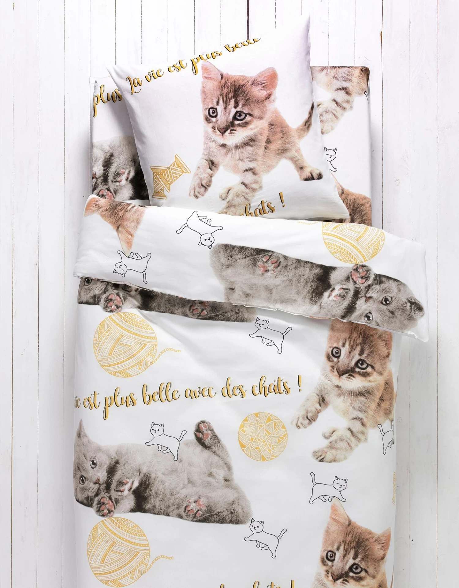 – Housse de couette 1 personne (140×200 cm) : 2 faces identiques. Rabat simple pour bien border