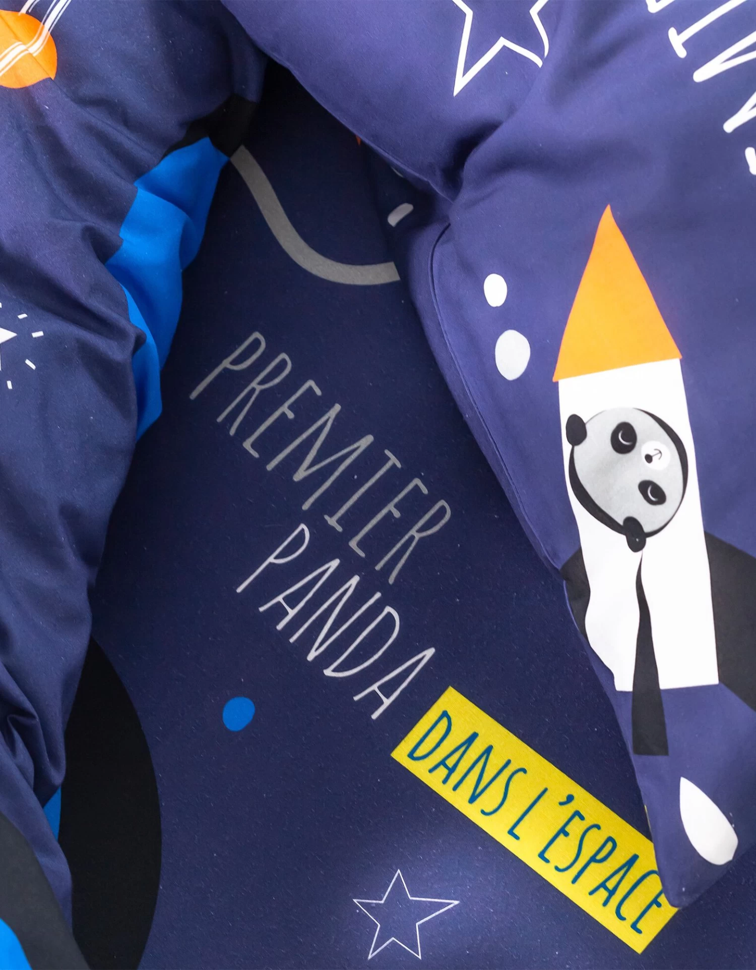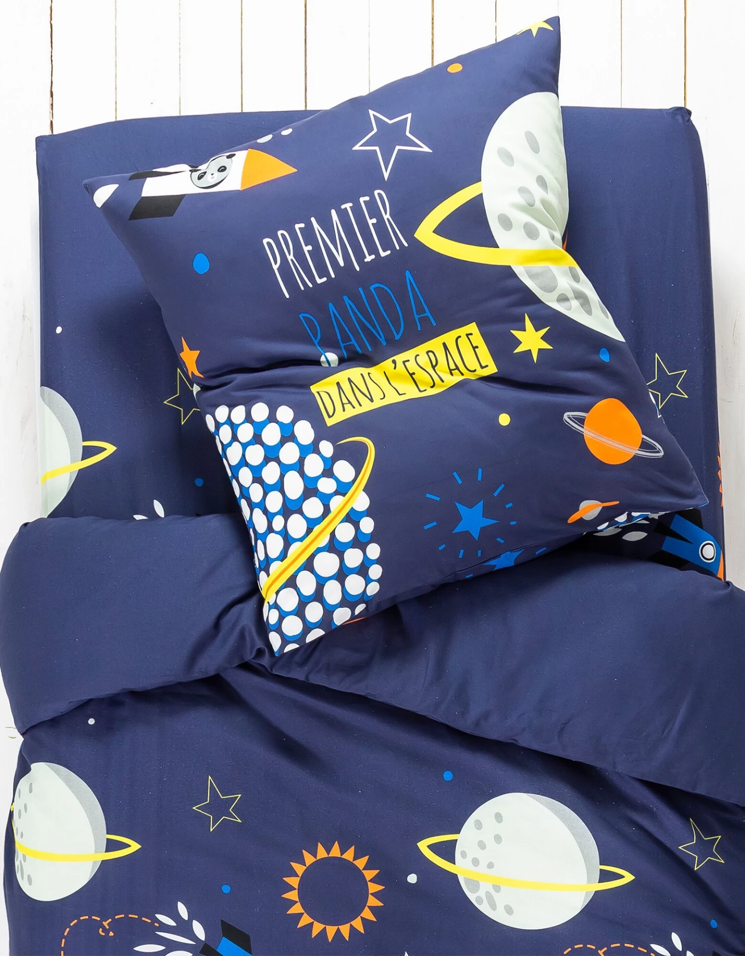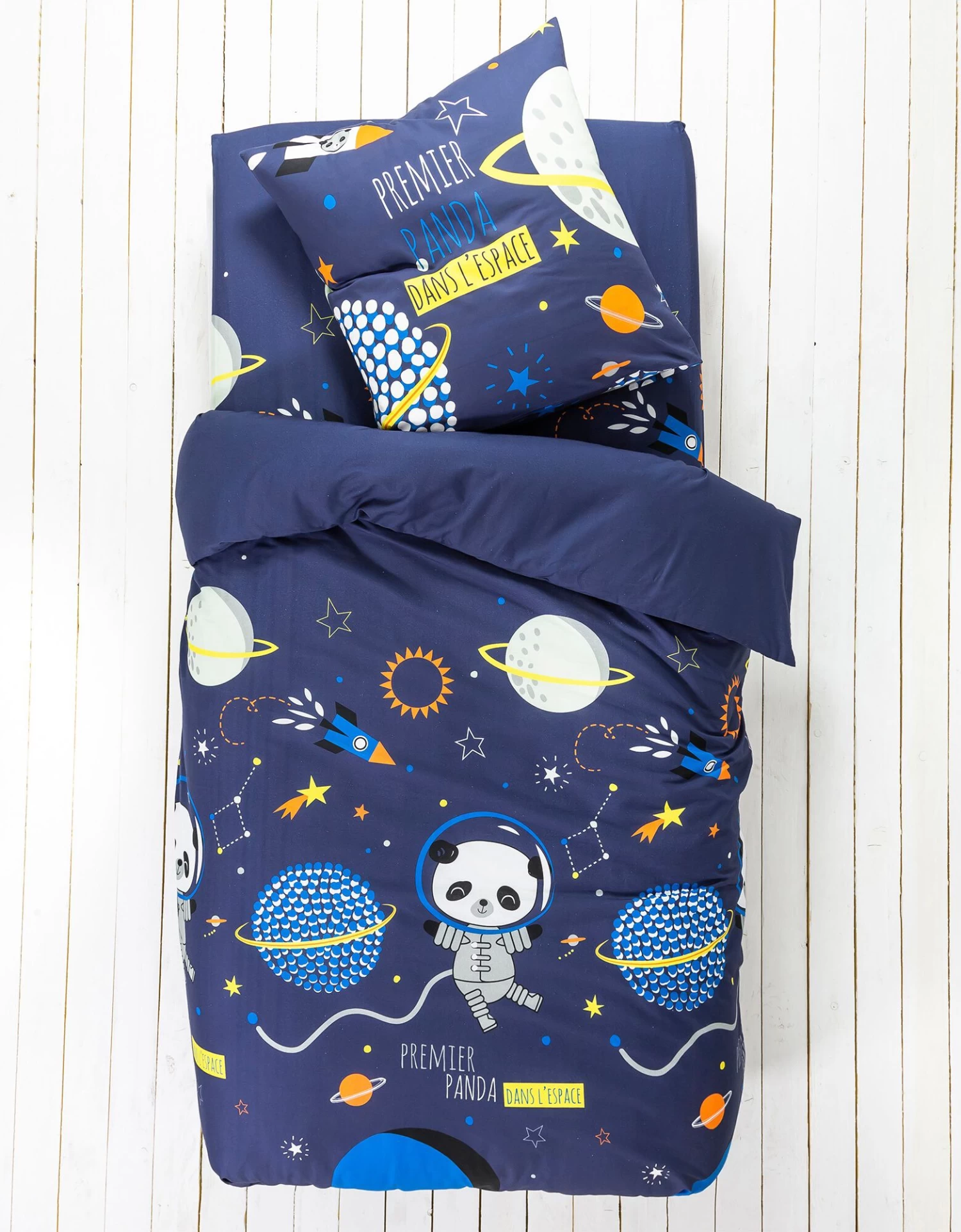 – Housse de couette 1 personne (140×200 cm) : motif effet placé, 2 faces identiques. Forme bouteille pour bien border