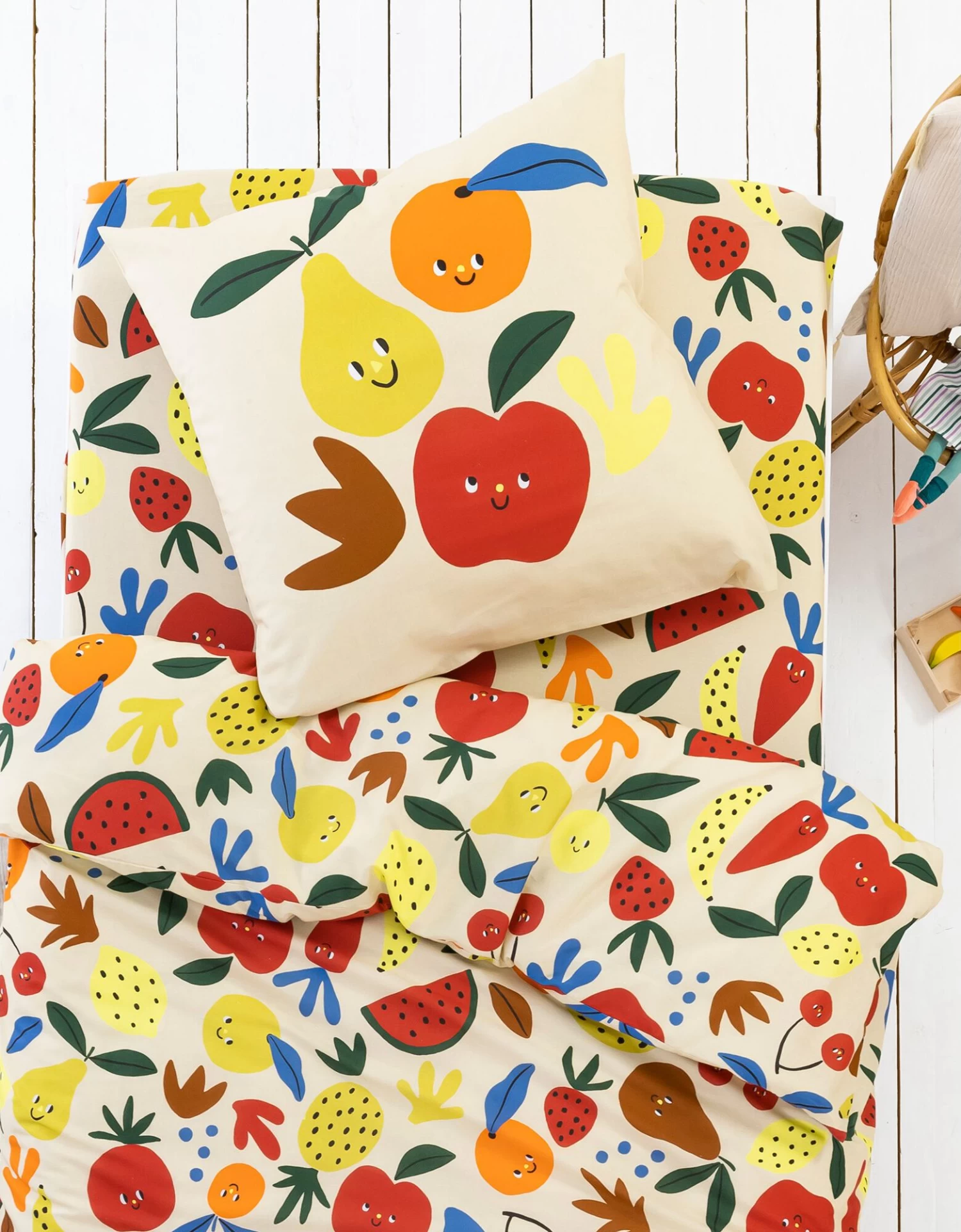 – Taie forme sac (63×63 cm) : motif placé, 2 faces identiques