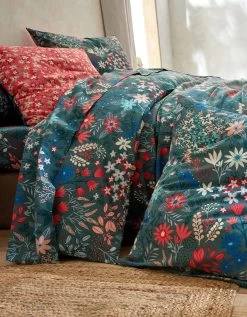 ∙ Taie d’oreiller forme sac, 2 faces différentes (1 face verte à motifs fleuris et 1 face rouge à petits motifs fleuris)
