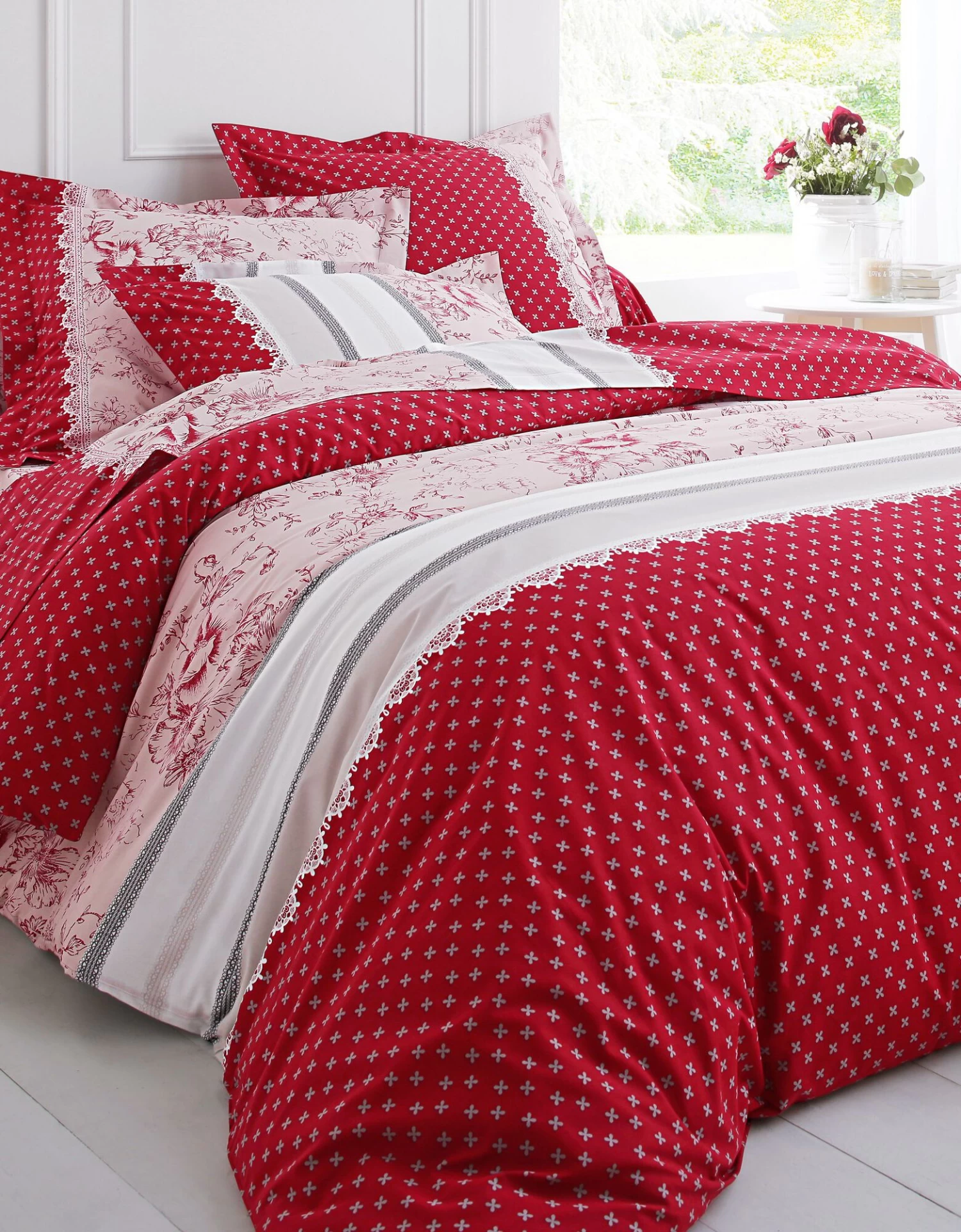 – Taie d’oreiller volant plat, à motif placé : 2 faces différentes