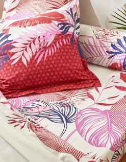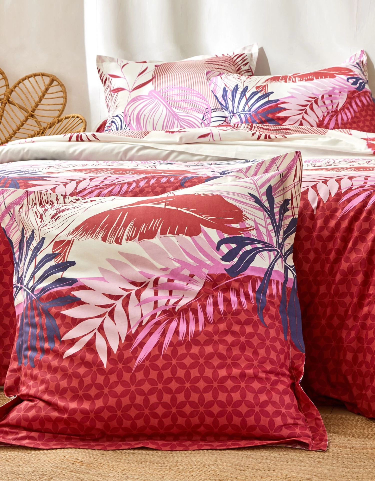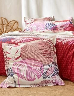 – Taie d’oreiller volant plat, carrée, à motif placé, 2 faces différentes