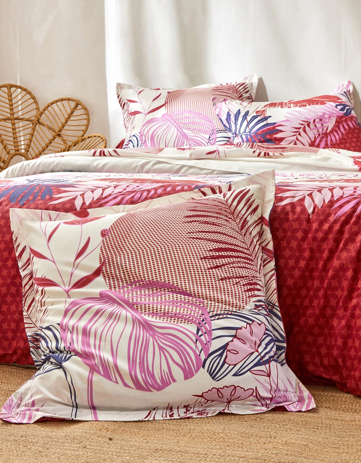 – Housse de couette, motif effet placé, 2 faces identiques. Forme bouteille pour bien border. Existe en grande taille (260×240 cm)