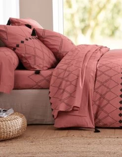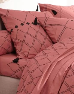 – Taie d’oreiller forme sac, finition pompons aux 4 coins