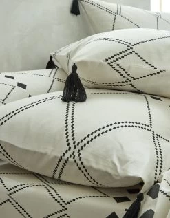 – Housse de couette, 2 faces identiques. Forme bouteille pour bien border. Finition pompons aux 4 coins. Existe en grande taille (260×240 cm)