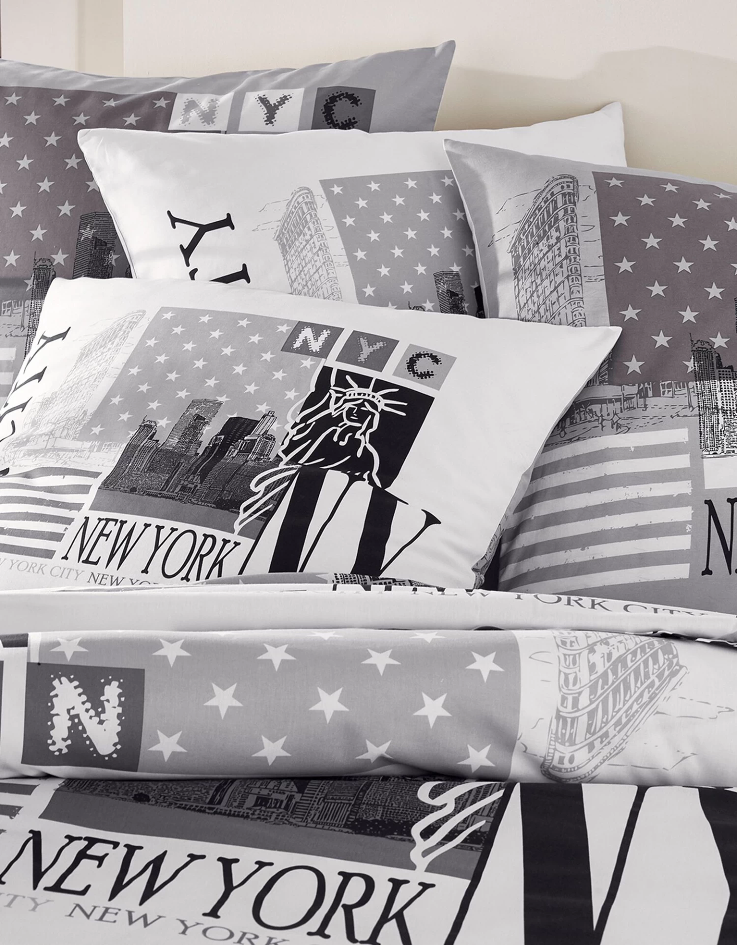 ∙ Taie d’oreiller forme sac, motifs placés : 2 faces différentes