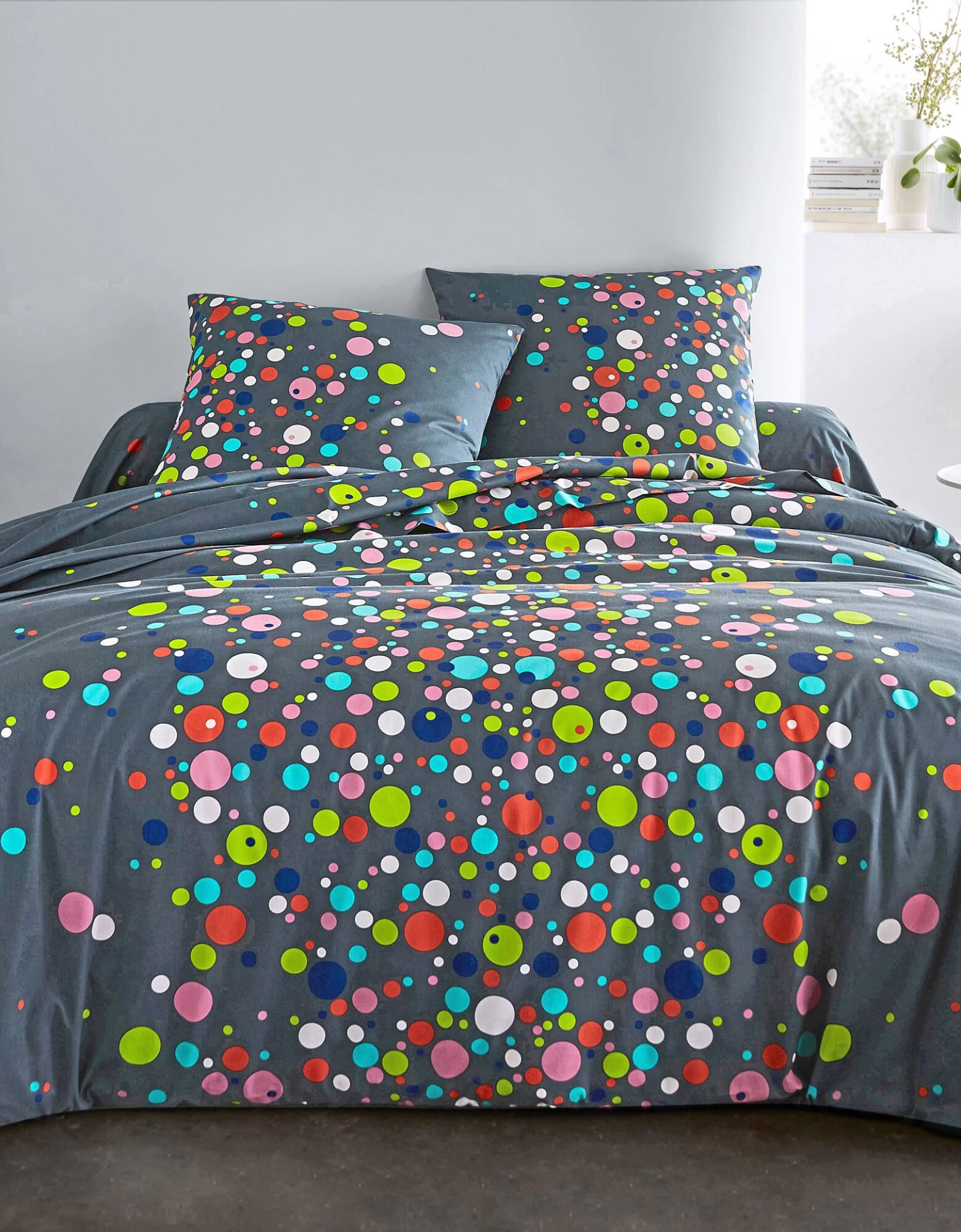 – Housse de couette, 2 faces identiques. Forme bouteille pour bien border