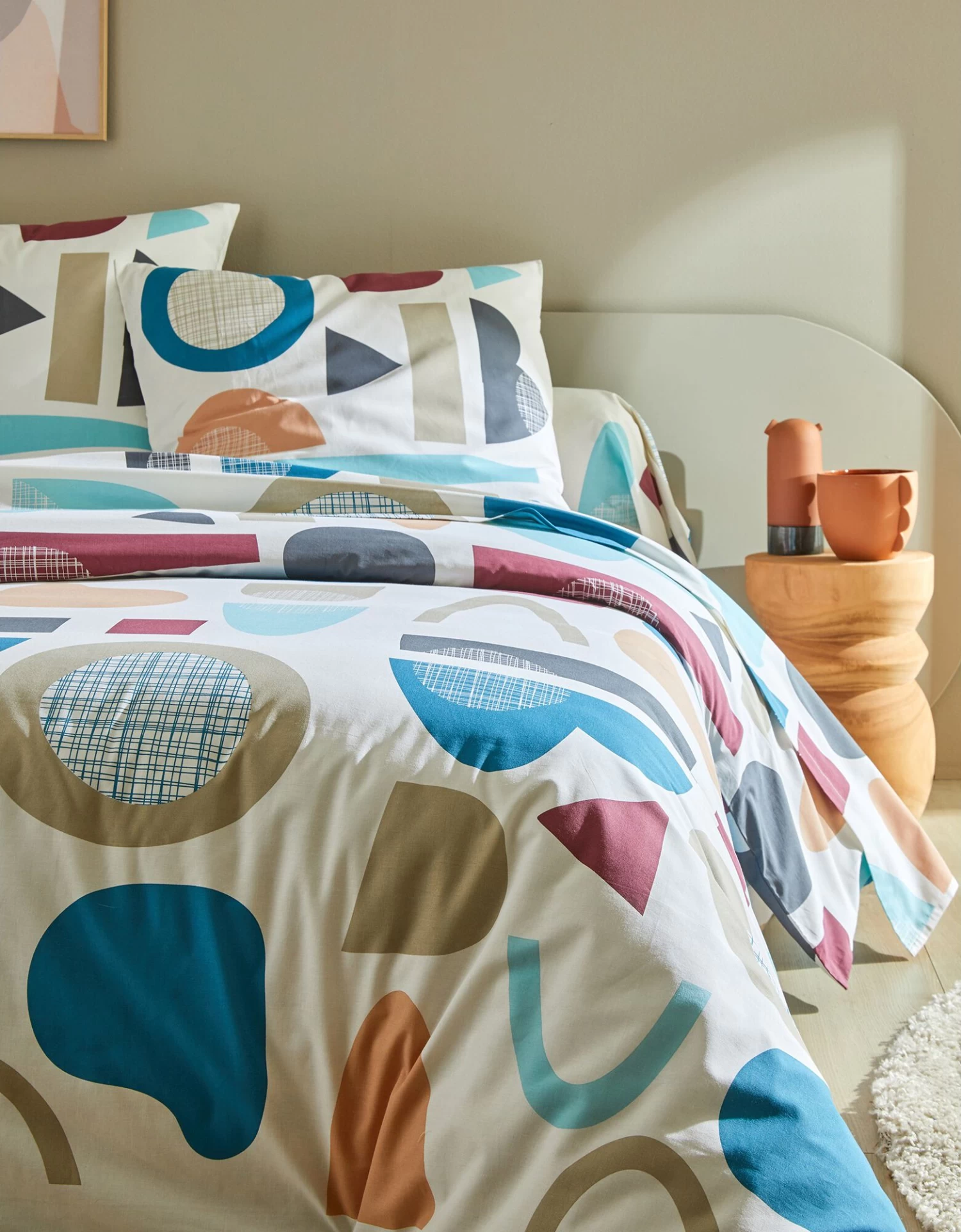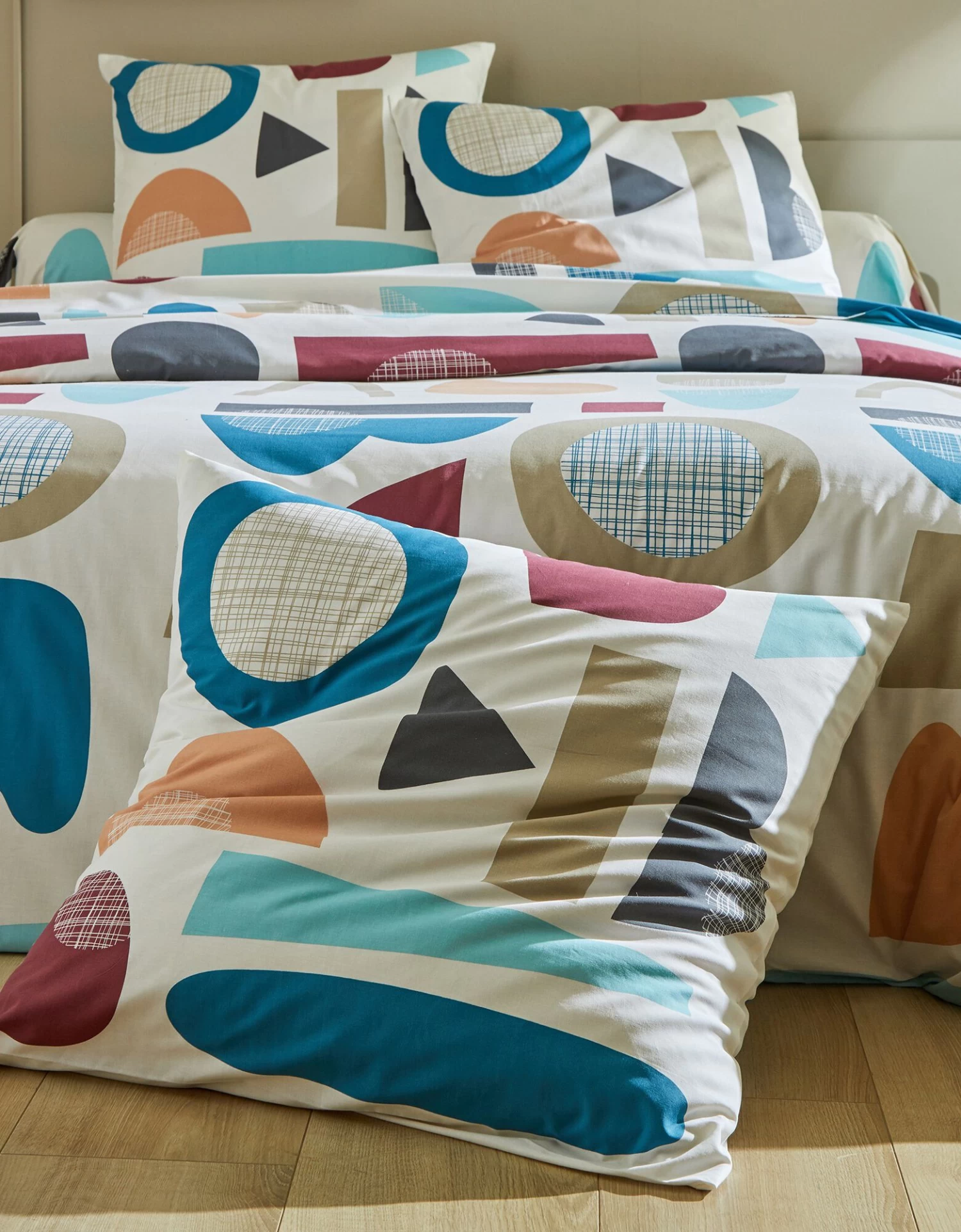 – Housse de couette, motif effet placé : 2 faces identiques. Forme bouteille pour bien border. Existe en grande taille (260×240 cm)