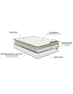 – Technologie ressorts ensachés : soutien précis et homogène, indépendance de couchage et bonne aération du matelas (évacuation de l’humidité)