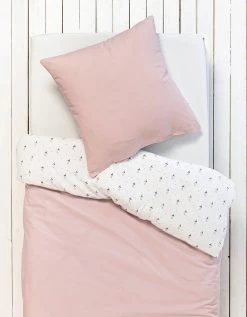 – Housse de couette 1 personne (140×200 cm) fermeture boutonnée avec fentes passe-mains 2 faces différentes : 1 face unie, 1 face imprimée fleurs