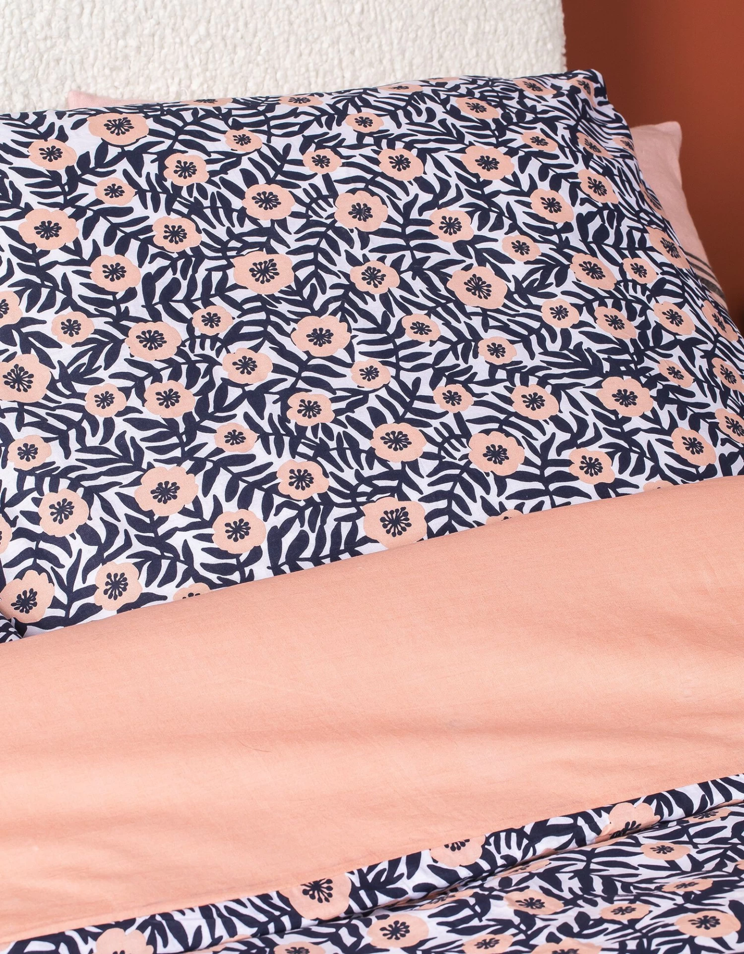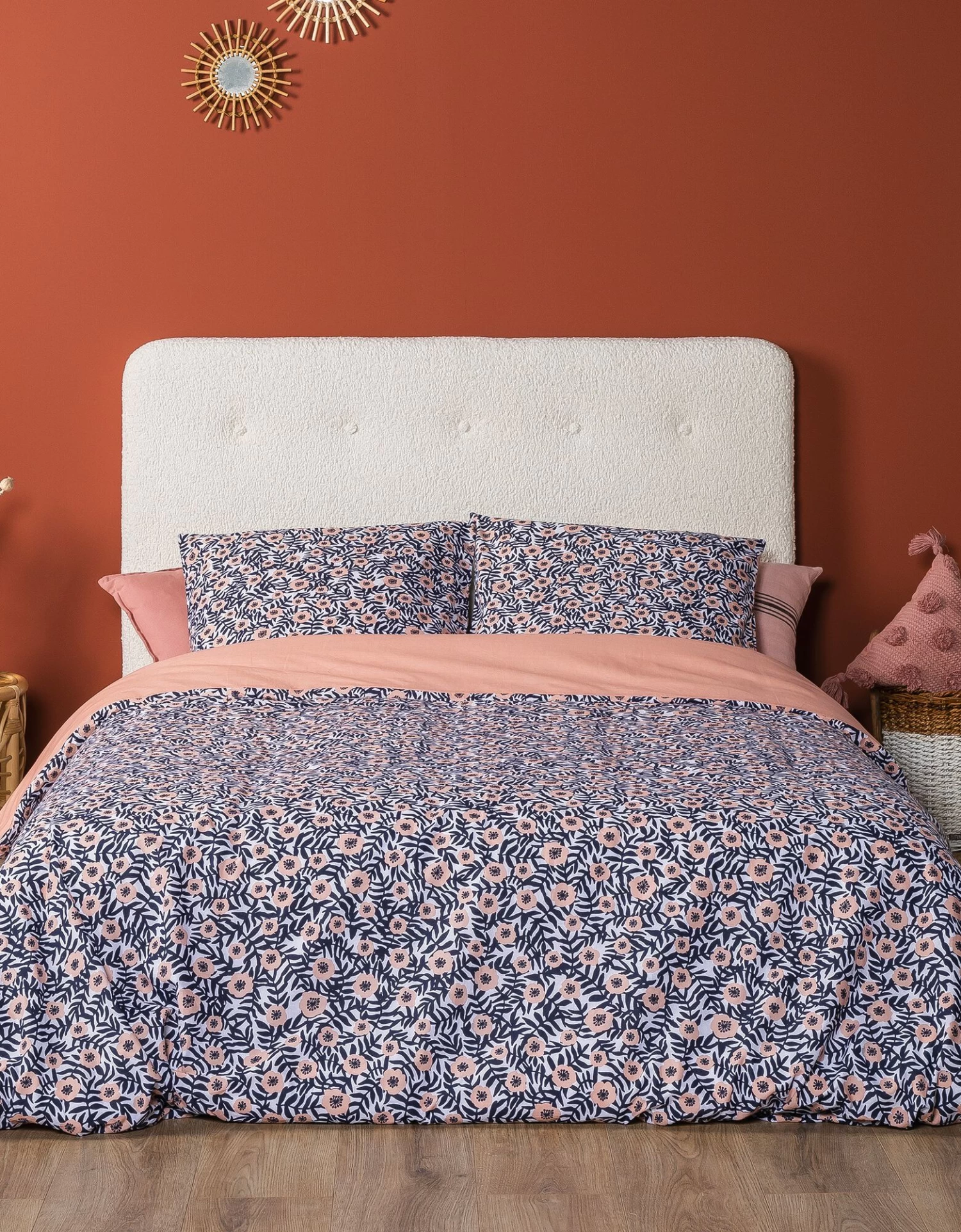 – Housse de couette forme bouteille pour bien border, 2 faces diffĂ©rentes : 1 face unie, 1 face imprimĂ© continu