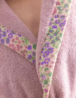 – Large biais fleuri aux poches, aux poignets, à la capuche et le long devant