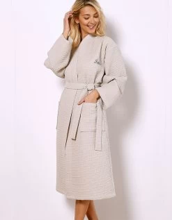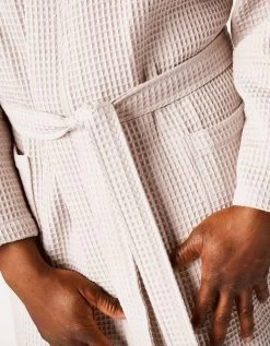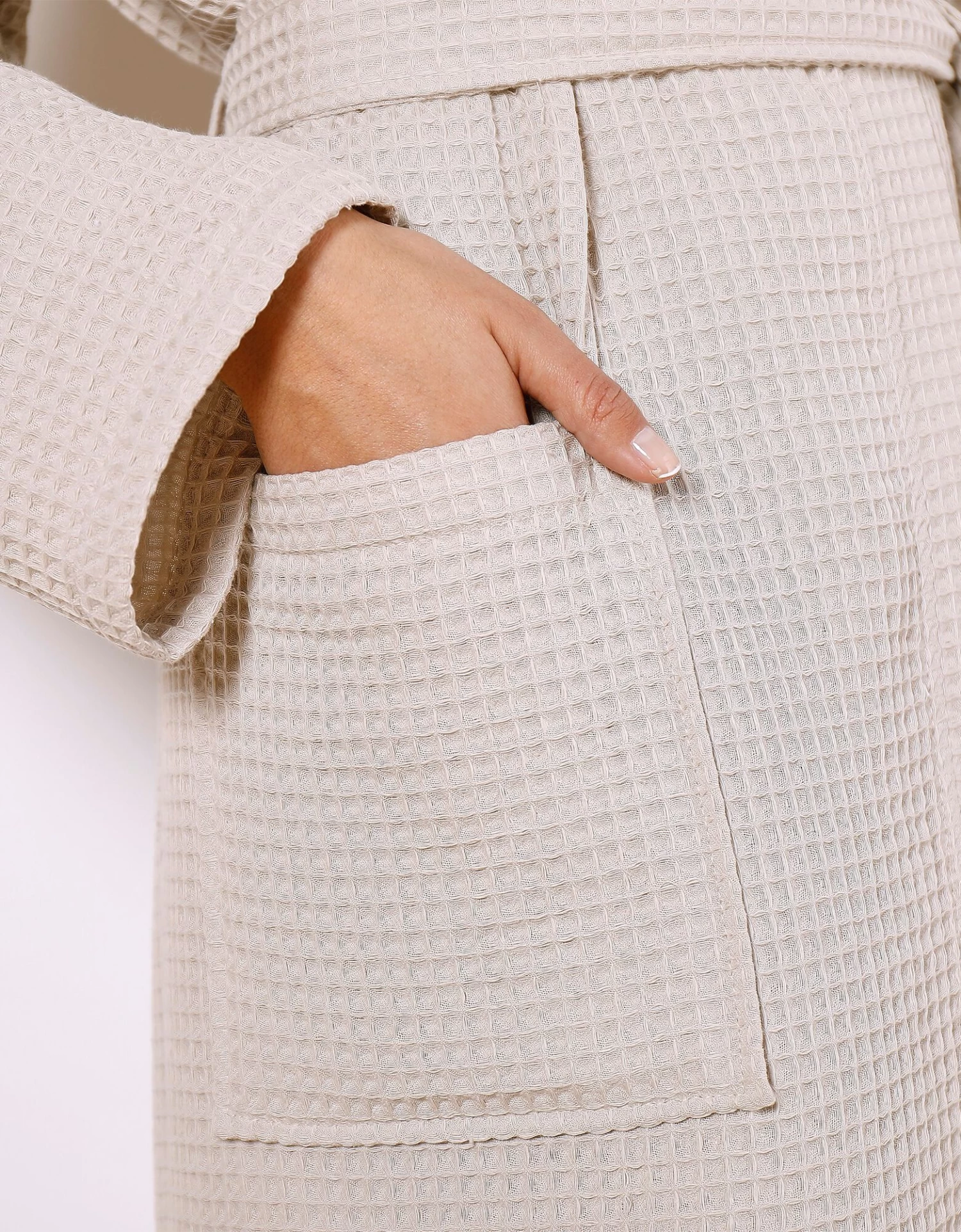– Peignoir réalisé en nid d’abeille 100% coton d’excellente qualité