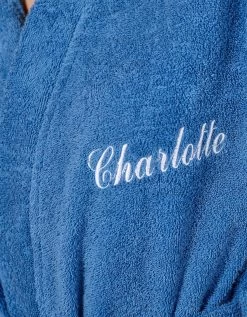 – Peignoir personnalisable avec un style d’écriture et une couleur associés au coloris choisi