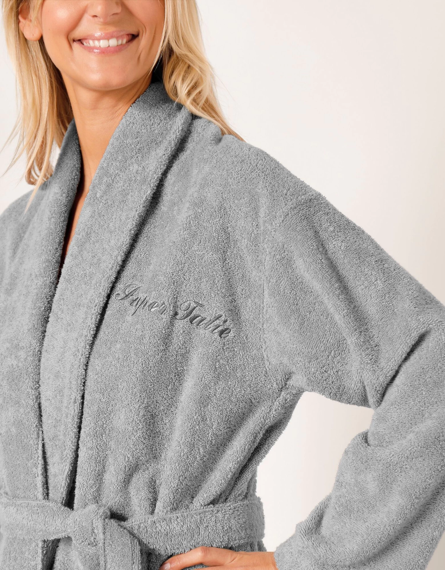 – Peignoir personnalisable avec un style d’écriture et une couleur associés au coloris choisi
