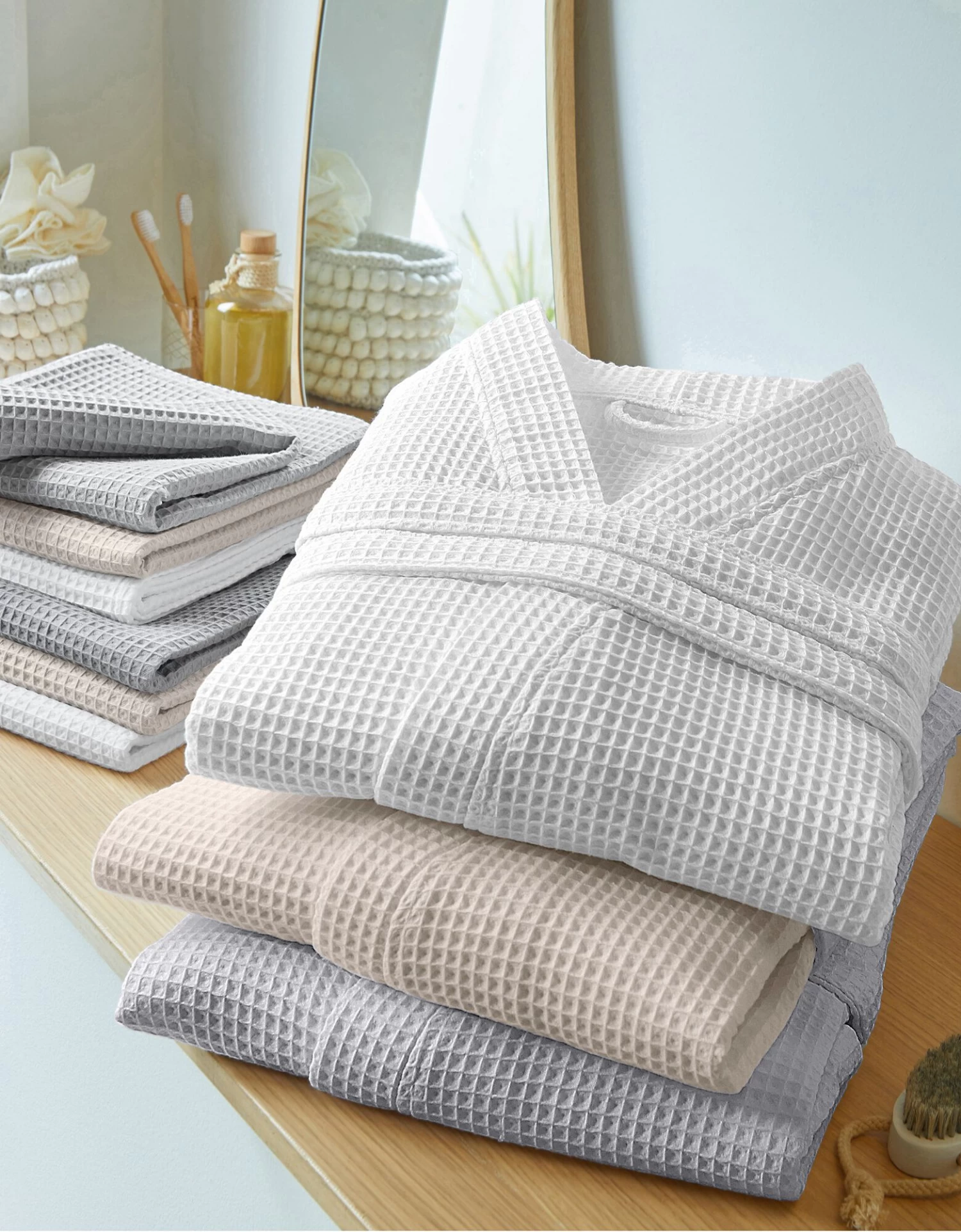 – Nid d’abeille 100% coton d’excellente qualité grammage : 320 g/m2.