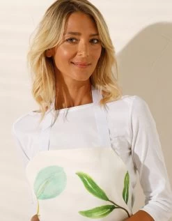 – Fabriqué en France, ce tablier est une exclusivité Blancheporte. Avec cette collection dessinée à Tourcoing, imprimée et cousue à l’atelier Agile de Roubaix, nous réduisons notre impact carbone et participons à la préservation de l’emploi de proximité.