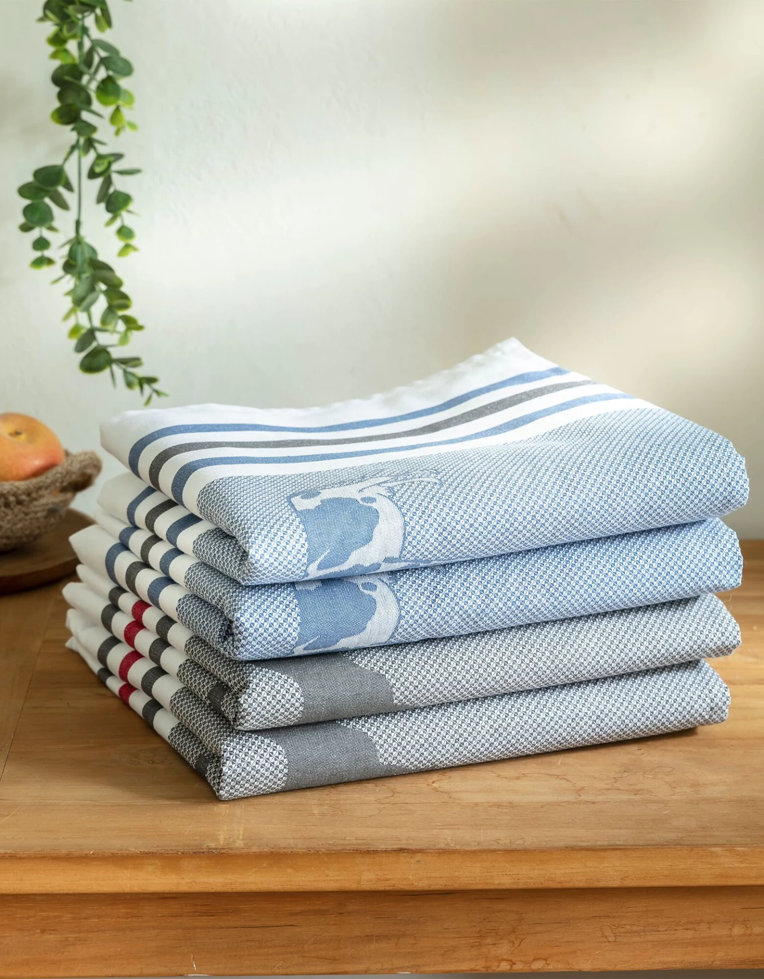 – 2 motifs poules coloris gris et 2 motifs vaches coloris bleu