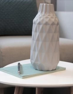 – Motifs angulaires en relief suggérant la forme de l’origami